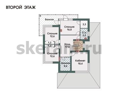 На втором этаже предполагается размещение 3 спальных комнат и простороного кабинета.